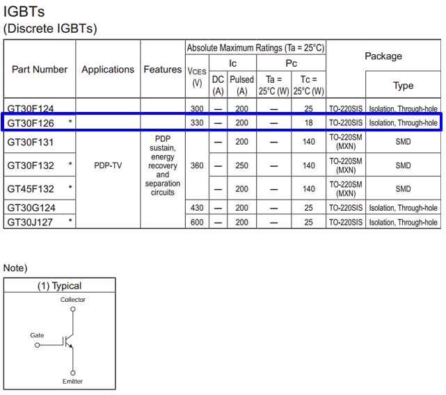 Datasheet Stv8172A : 30F126 Transistor - 330V, IGBT, GT30F126 ( Pinout ) - Микросхема tda8172 аналог stv9302h, stv8172 и др.